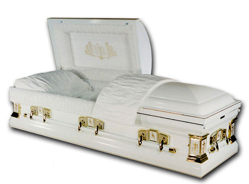 White with gold crosses on corner, Embossed Bible on inner Lid, White interior